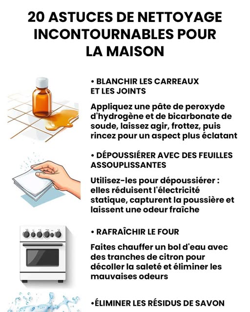 Qui n’a jamais rêvé d’un intérieur impeccable… sans passer ses week-ends à frotter ? Le ménage n’a pas besoin d’être une corvée interminable. Avec quelques produits simples et un brin d’astuce, on peut venir à bout des taches les plus tenaces, des mauvaises odeurs et de la poussière en un rien de temps. Voici 20 astuces maison testées et approuvées pour nettoyer vite, bien, et sans se ruiner !