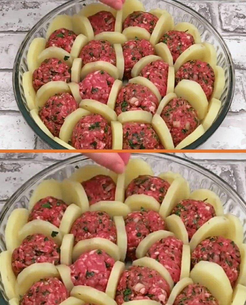 Boulettes de viande et pommes de terre gratinées au four