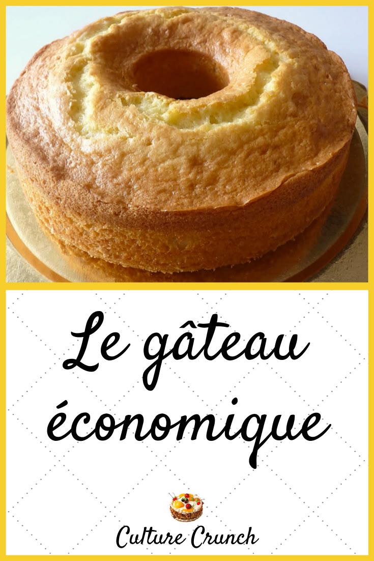 Le gâteau économique est un gâteau à la vanille classique à base de farine, sucre, oeufs, lait, levure et extrait de vanille.
