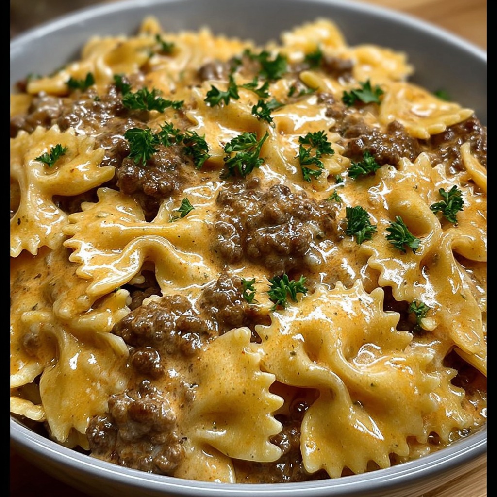 Pâtes papillon à la viande hachée et sauce crémeuse