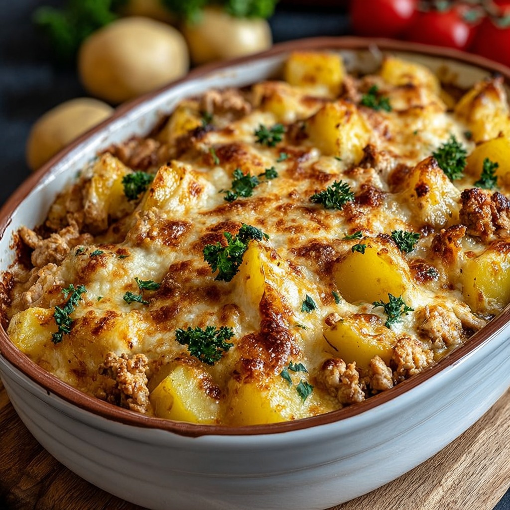 Poulet Haché au Fromage et Pommes de Terre en Cocotte