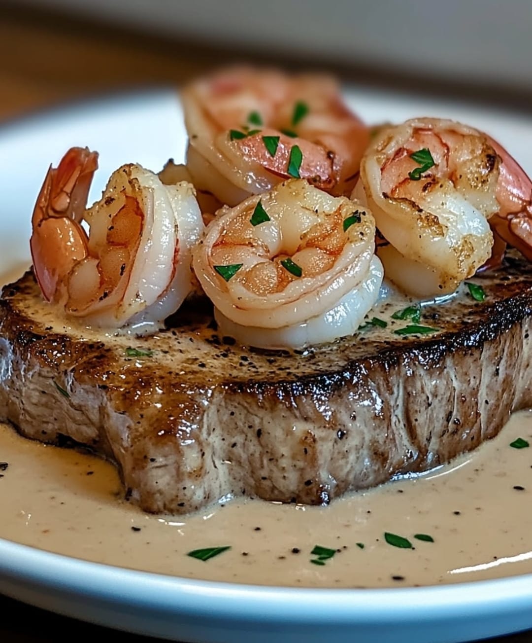 Steak aux crevettes crémeuses et sauce au homard 🥩🍤😋❤️