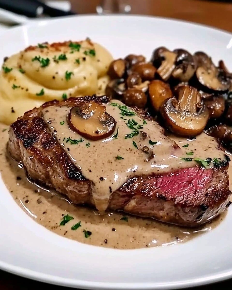 Steak crémeux au beurre à l’ail et sauce aux champignons 🥩🍄