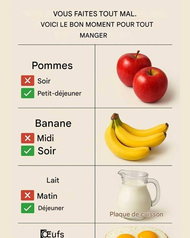Dans ce guide, nous analysons 20 aliments du quotidien – des bananes aux flocons d’avoine en passant par le poulet et le chocolat noir – et révélons les moments optimaux pour les consommer (et ceux où les éviter). Que vous planifiiez vos repas pour une meilleure digestion, un meilleur niveau d’énergie ou un sommeil de qualité, ces simples ajustements peuvent vous aider à optimiser vos repas. Il s’agit de synchroniser votre assiette avec votre horloge biologique.🥇 1. Banane